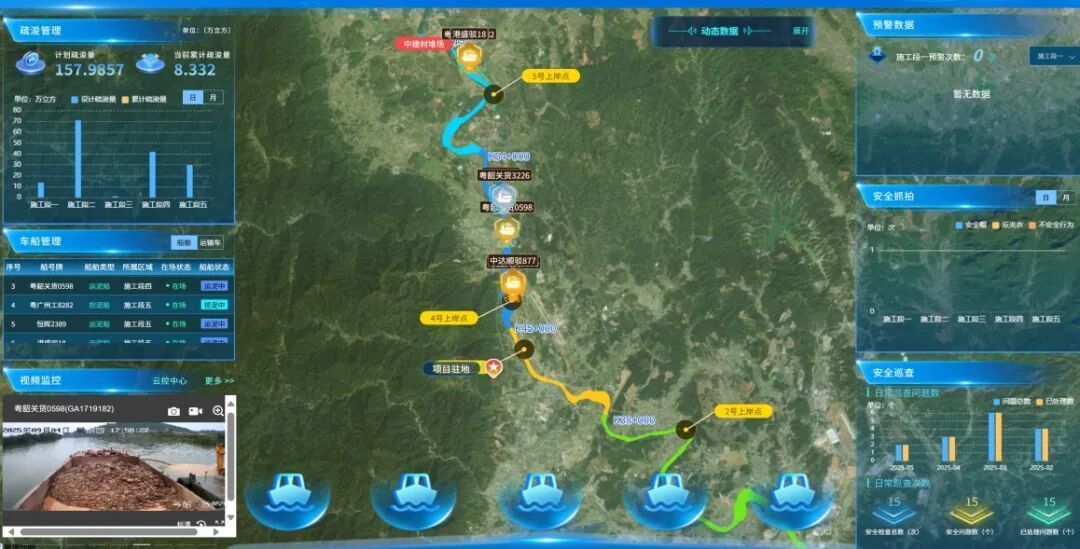 试运行期间,施工智慧管理平台已实现“人、机、船”100%线上管理,安全巡查与隐患整改效率显著提高,疏浚作业全流程数字化留痕,各标段施工进展实时可控,北江航道扩能升级上延工程航道工程建设管理效能持续增强。